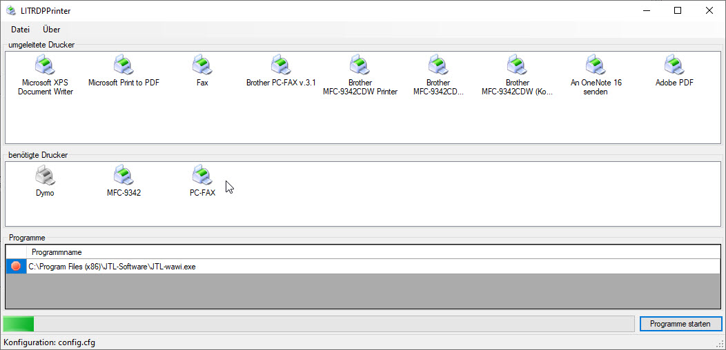 Kopiert das Programm auf euren Terminal Server (Beispiel: C:\LITRDPPrinter\LITRDPPrinter.exe) und legt dort ebenfalls die Konfigurationsdateien ab. Für jede APP kannst du eine eigene erstellen. (filiale_xyz.cfg, programm_xyz.cfg u.s.w.)